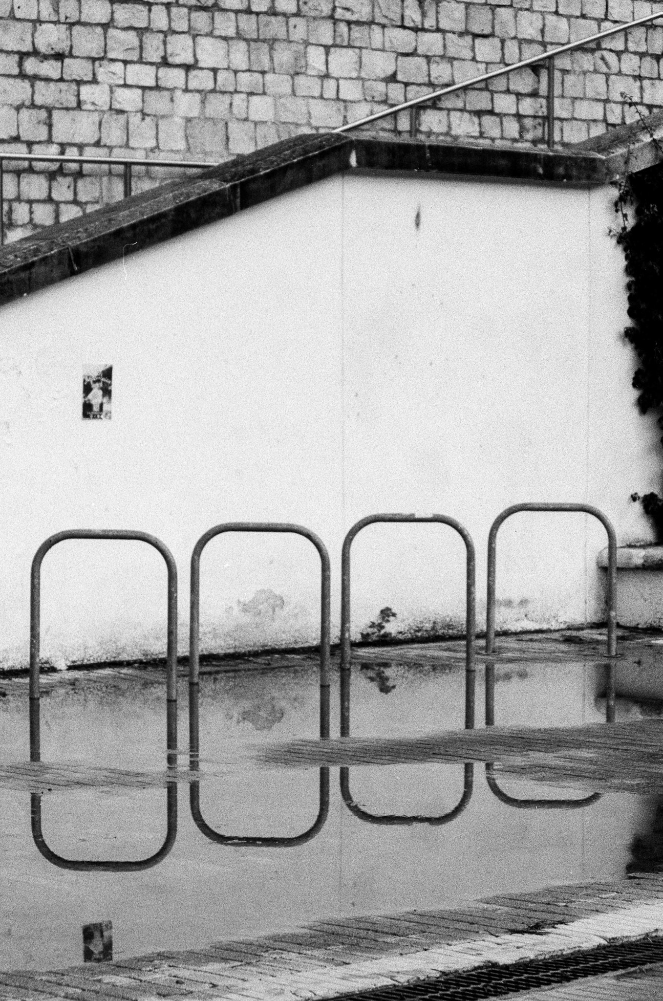Without color, the focus shifts entirely to the rough white walls, the deep shadows in the alleyways, and the layers of history built upon one another. The grain of the film captures the timeless, almost stubborn character of this neighborhood, where every corner holds an echo of the past. It's a slow process for a place that demands you slow down.