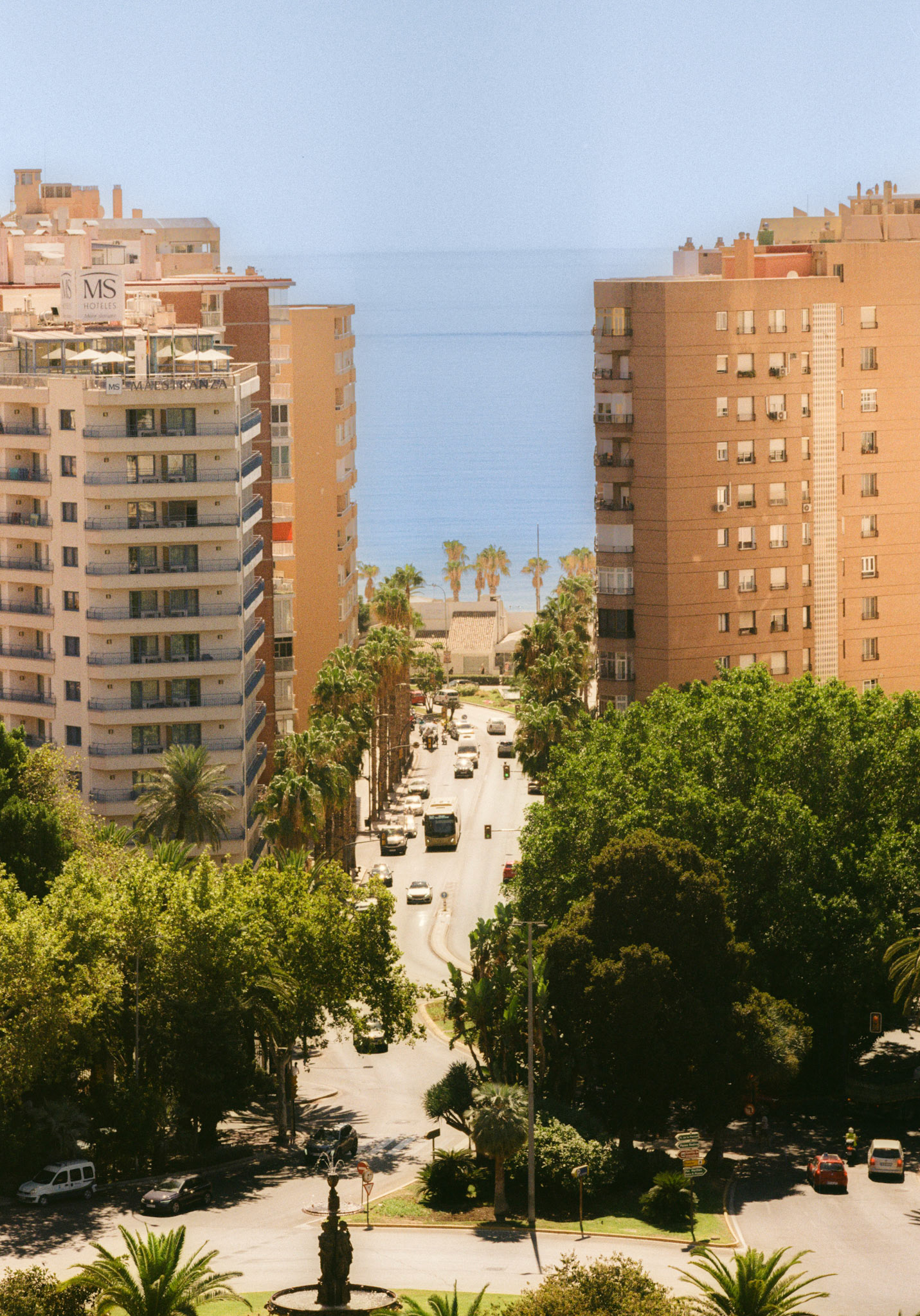 Málaga on color film feels like a permanent summer. The city’s energy is defined by its warm, Mediterranean light and the vibrant life found along its sun-drenched streets.